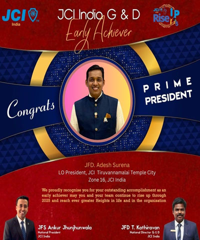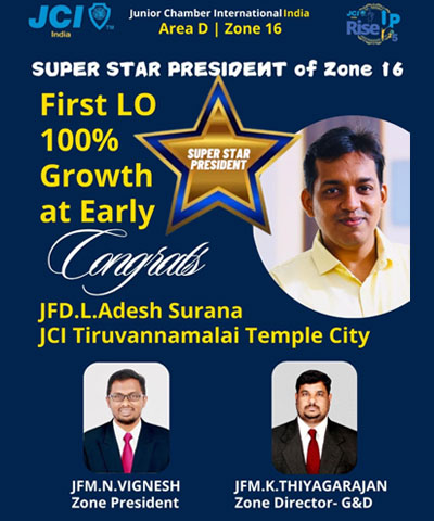 JCI India and Zone 16 are always acknowledges Temple City contributions and efforts through Awards, Praise, and other forms of appreciation.